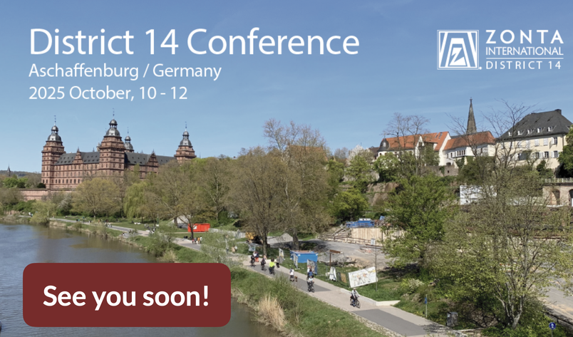 Join us in Aschaffenburg from October 10th to 12th, 2025, for an inspiring gathering of Zontians from across District 14. Under the motto “Sustainability, Spirit and Speaking Up for Human Rights,” this conference offers a unique opportunity to connect, learn, and celebrate our shared commitment to empowering women and girls worldwide.